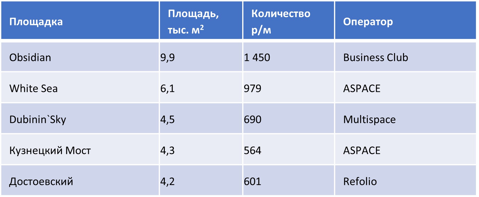*Уровень вакантности в сервисных офисах (отдельных блоках) действующих площадок сетевых операторов по рабочим местам.