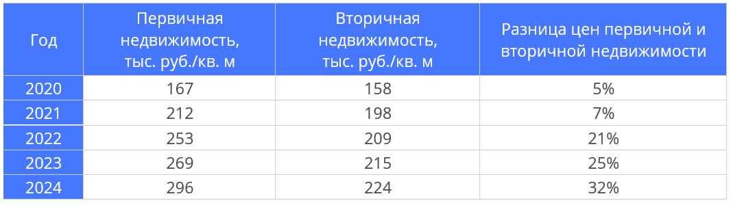 По данным международной консалтинговой компании Nikoliers, разрыв цен на рынках первичной и вторичной жилой недвижимости за пять лет увеличился более чем в шесть 6 раз: с 5% в 2020 году до 32% в 2024 году. Драйвером повышения цен на новостройки стал запуск ипотечных программ с господдержкой и увеличение доли квартир премиальных сегментов в общей структуре предложения. По прогнозам Nikoliers, до конца 2025 года разница между средними ценами предложения в сегментах сохранится на том же уровне.