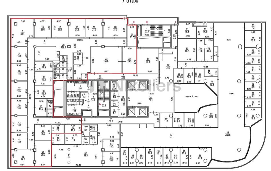 Офисные помещения находятся на 2-10-м этажах, на верхнем этаже расположен офис с террасой. На 1-м этаже размещается инфраструктура здания: кафе, рестораны, кофейня, банкоматы, магазин.