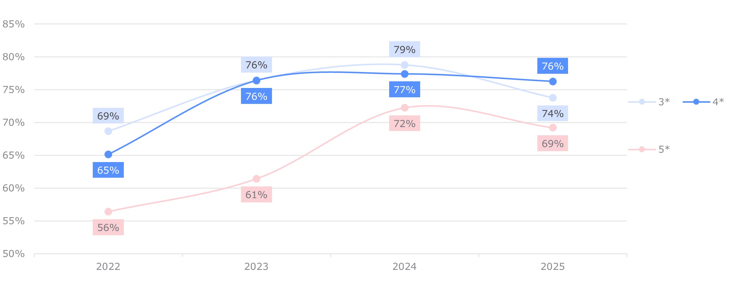 Ожидается, что в 2026 г. тенденция продолжится: рост ADR и RevPAR в пределах 10% при стабилизации или небольшой корректировке загрузки гостиниц вниз.